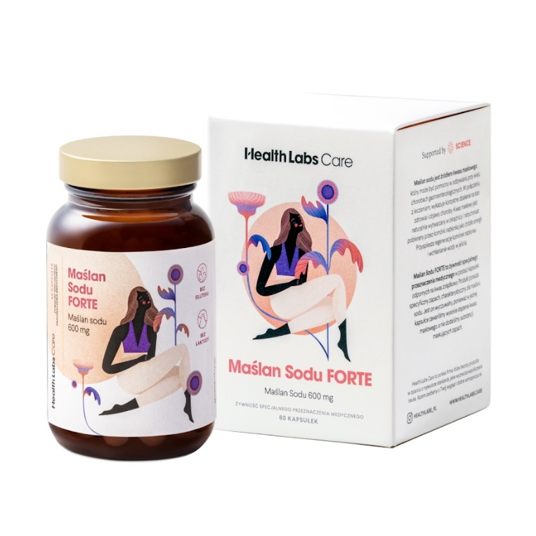 HealthLabs Maślan Sodu Forte 600mg 60 kapsułek to żywność specjalnego przeznaczenia medycznego, stworzona z myślą o wsparciu funkcjonowania jelit. Produkt jest szczególnie polecany do postępowania dietetycznego w przypadku zespołu jelita drażliwego (IBS), zakażeń jelit, chorób zapalnych błony śluzowej jelit, zaburzeń flory jelitowej oraz ostrych biegunek różnego pochodzenia. Dzięki wysokiej zawartości kwasu masłowego, preparat wspiera odbudowę i prawidłowe funkcjonowanie jelit.