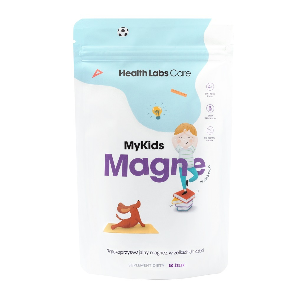 HealthLabs MyKids Magne - wysokoprzyswajalny magnez w żelkach dla dzieci to idealne rozwiązanie dla najmłodszych. Ten suplement diety zawiera 60 żelek (168 g), co wystarcza na 30 - 60 dni stosowania. Produkt jest bezglutenowy, bez laktozy i odpowiedni dla wegan.