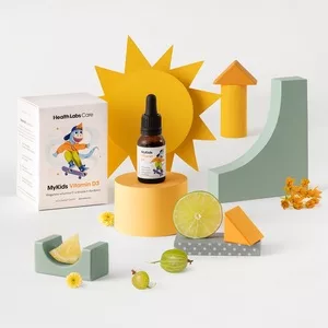 HealthLabs MyKids Vitamin D3 to wegańska witamina D w kropelkach, stworzona specjalnie dla dzieci, by wspierać ich układ odpornościowy. Produkt oferuje 360 kropli, co wystarcza na 180 dni stosowania, i jest odpowiedni już od 1 dnia życia.