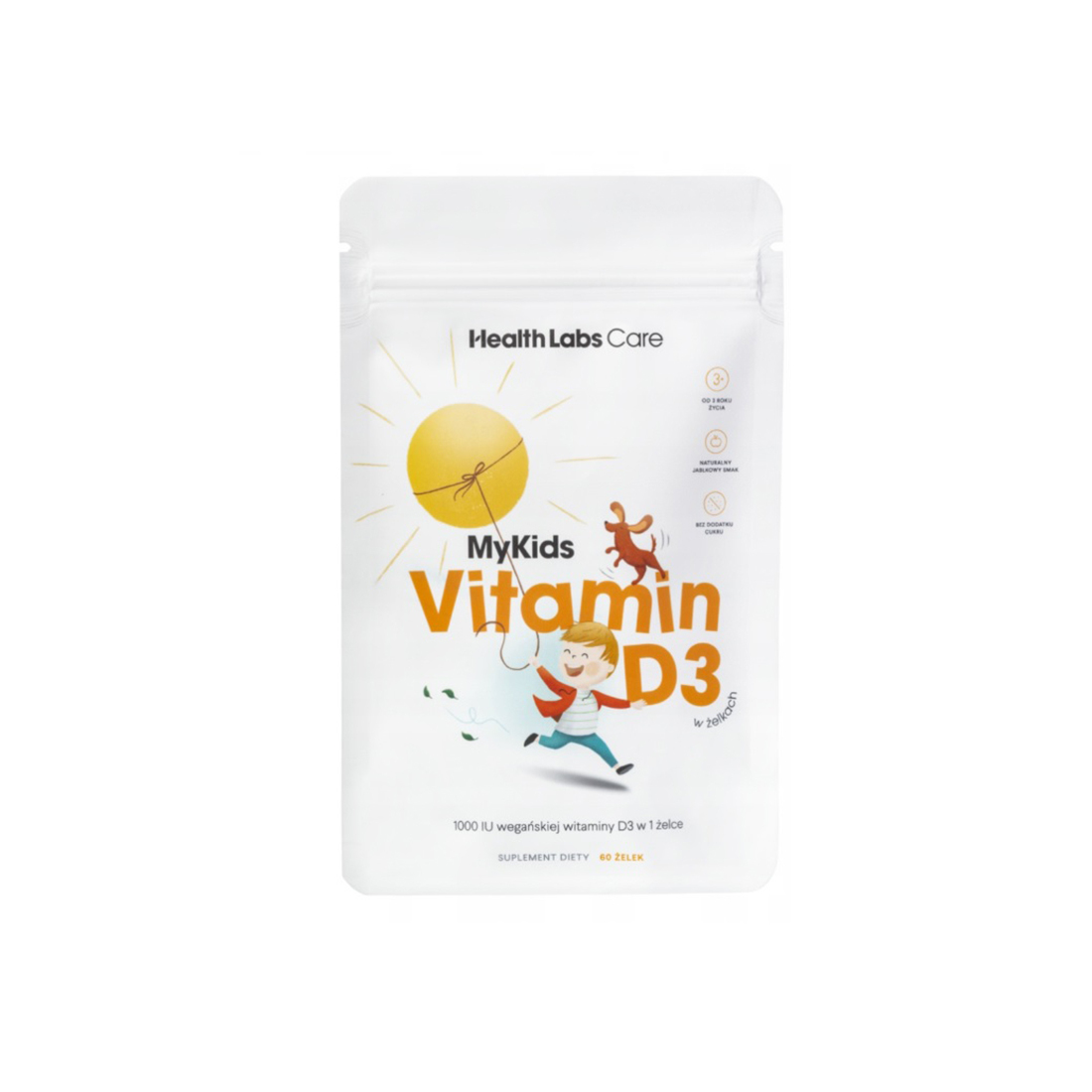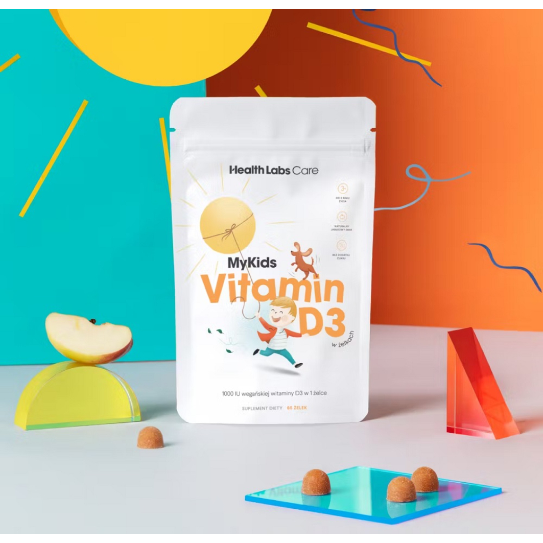 HealthLabs MyKids Vitamin D3 to suplement diety w formie pysznych żelek, stworzony z myślą o najmłodszych. Każda żelka dostarcza aż 1000 IU witaminy D, co wystarcza, aby pokryć dzienne zapotrzebowanie dzieci do 10 roku życia. Produkt cechuje się jabłkowym smakiem, brakiem dodatku cukru i żelatyny, a także jest odpowiedni dla dzieci od 3 roku życia.