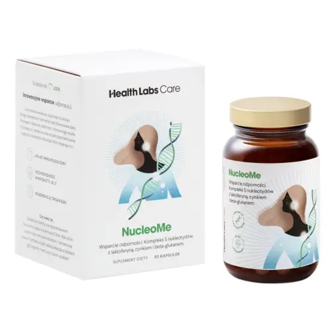HealthLabs NucleoMe to zaawansowany suplement diety stworzony z myślą o kompleksowym wsparciu odporności organizmu. Zawiera unikalną kompozycję pięciu kluczowych nukleotydów, wzbogaconą o cynk, laktoferynę, beta-glukan z błonnika owsianego oraz witaminę C. Opakowanie zawiera 60 kapsułek, co wystarcza na 30 dni stosowania. NucleoMe to idealne rozwiązanie dla osób dbających o prawidłowe funkcjonowanie układu immunologicznego, zwłaszcza w okresach wzmożonego wysiłku fizycznego lub osłabienia organizmu.