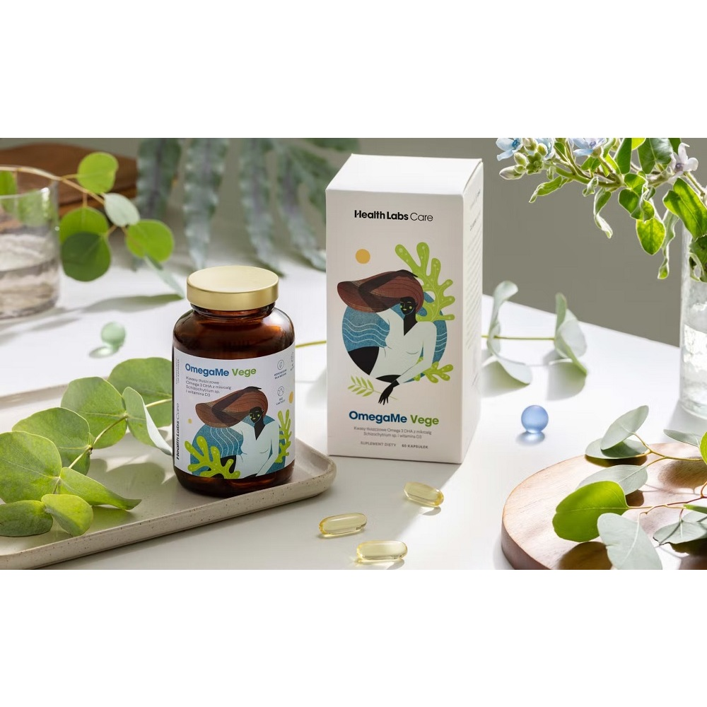 HealthLabs OmegaMe Vege kwasy tłuszczowe Omega 3 DHA z alg morskich z witaminą D3 suplement diety 60 kapsułek