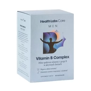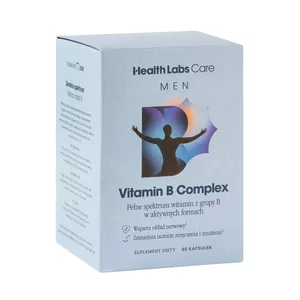 HealthLabs Vitamin B Complex suplement diety dla mężczyzn 60 kapsułek to doskonały wybór dla mężczyzn pragnących wspierać swoje zdrowie dzięki odpowiednim ilościom witamin z grupy B. Produkt jest odpowiedni dla wegan, wolny od laktozy i bezglutenowy, co czyni go idealnym wsparciem dla diety wegetariańskiej i wegańskiej.