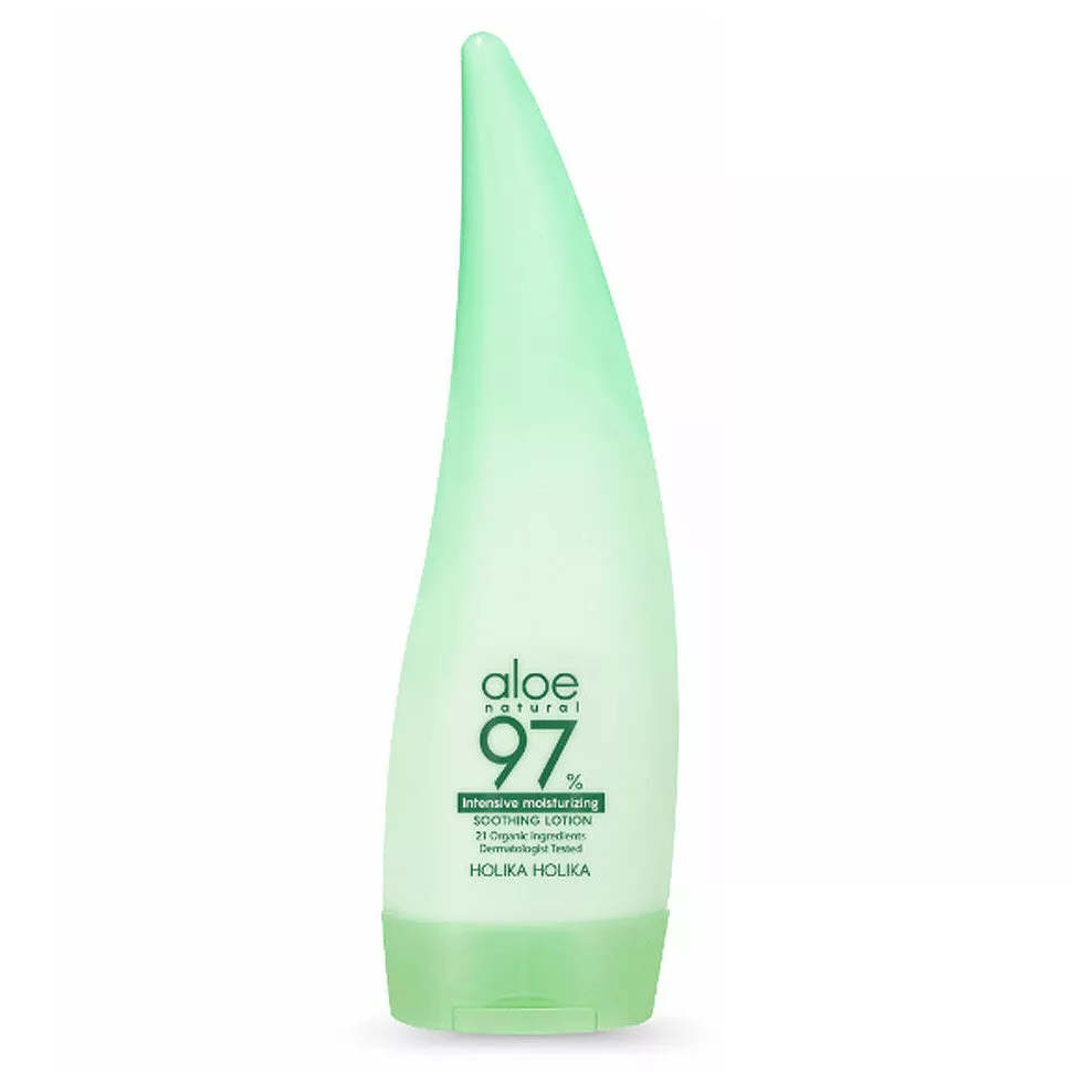 Twoja skóra będzie Ci wdzięczna za taką pielęgnację! Aloesowy lotion nawilżający Holika Holika Aloe 97% to doskonały sposób na odświeżenie i odżywienie skóry oraz zapewnienie jej intensywnego nawilżenia. Dzięki szybkiemu wchłanianiu, pozostawia skórę przyjemnie odprężoną i pełną blasku. Kosmetyk dostarcza ważnych składników aktywnych i przywraca skórze równowagę. W składzie znajdziesz aż 21 naturalnych ekstraktów roślinnych, w tym różę, olej słonecznikowy i czarny bez. Lotion łagodzi podrażnienia, przyspiesza gojenie ran i subtelnie pachnie. Doskonale nadaje się do pielęgnacji każdego rodzaju skóry, nawet tej wrażliwej.