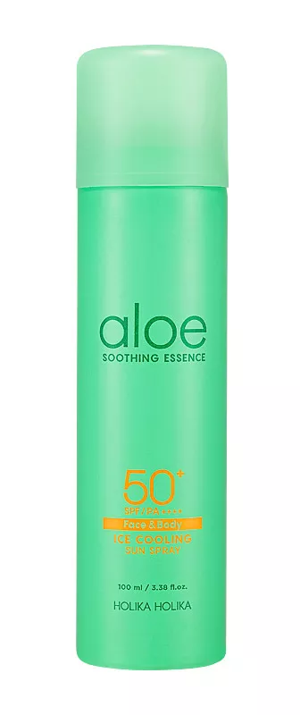 Mgiełka w aerozolu Holika Holika Aloe Ice Cooling Sun spray to innowacyjny kosmetyk przeciwsłoneczny z wysokim filtrem UV SPF 50++++. Jest niezwykle wygodna w aplikacji, nie tworzy oleistej warstwy na skórze i szybko się wchłania, zapewniając ochronę i komfort w letnie dni. Jej unikalne właściwości łagodzące i schładzające przynoszą natychmiastową ulgę oraz ukojenie. W składzie znajdują się wyciągi roślinne, które pielęgnują skórę, takie jak wyciąg z wąkroty azjatyckiej, nasion chia, liści aloesu, kurkumy oraz pestek słonecznika.