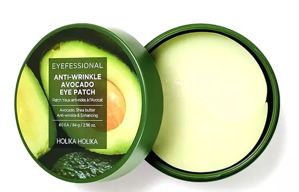 Holika Holika Eyefessional Anti-Wrinkle Avocado Eye Patch to innowacyjne hydrożelowe płatki pod oczy, które zawierają ekstrakt z awokado oraz masło shea. Zestaw składa się z 60 sztuk, które dogłębnie odżywiają i ujędrniają delikatną skórę wokół oczu. Produkt wykazuje działanie przeciwzmarszczkowe, a dzięki zawartości elastyny, kolagenu i kwasu hialuronowego zapewnia natychmiastowe i długotrwałe nawilżenie. Idealne dla skóry dojrzałej, z oznakami starzenia. Elastyczna, żelowa konsystencja płatków reaguje na temperaturę skóry, delikatnie się rozpuszczając, co pozwala na szybkie i równomierne wchłanianie substancji aktywnych.