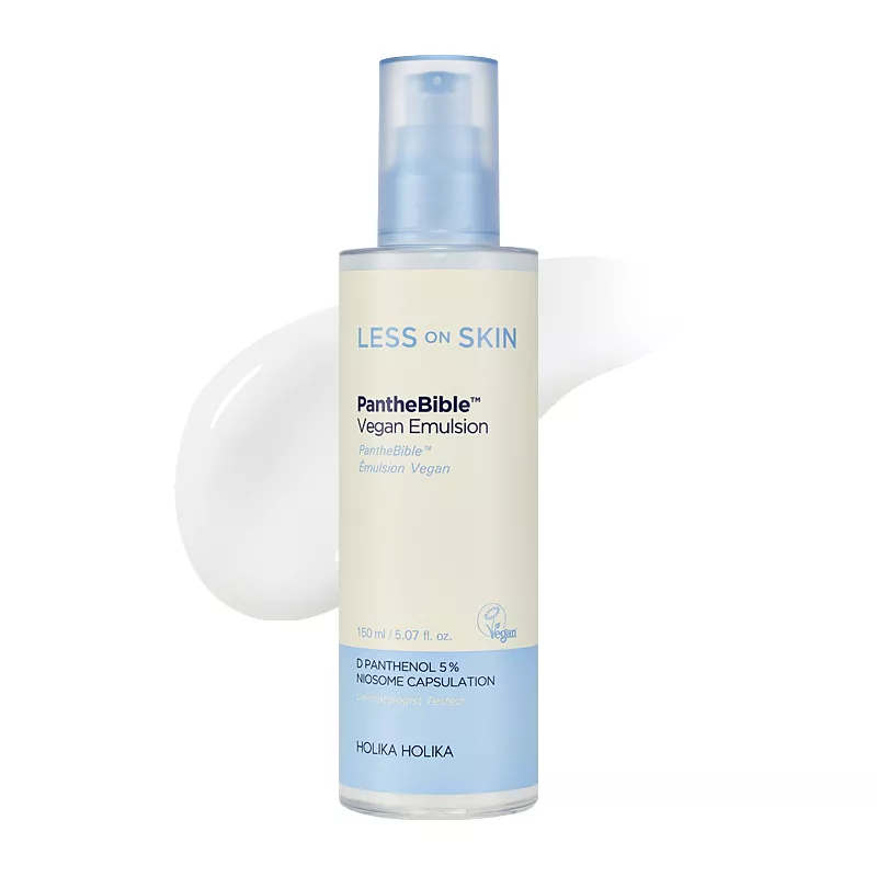 Holika Holika Less on Skin to emulsja do codziennej pielęgnacji twarzy, idealna dla każdego typu skóry, w tym wrażliwej, suchej oraz skłonnej do podrażnień. Ta wegańska seria kosmetyków wzbogacona o pantenol, często nazywany magnesem wilgoci, zmienia się w skórze w witaminę B5, czyli kwas pantotenowy. Dzięki temu zapewnia regenerację, łagodzi podrażnienia, nawilża skórę, dodaje jej blasku oraz wzmacnia barierę skórną.