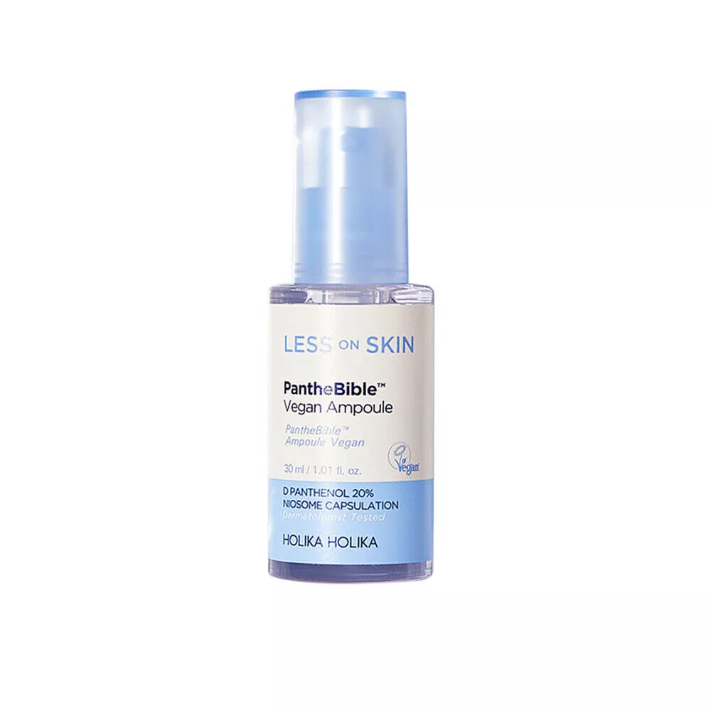 Holika Holika Less on Skin to łagodząca ampułka do skóry wrażliwej, wzbogacona o wysoką zawartość pantenolu, znanego również jako 'magnes wilgoci'. Po wchłonięciu przez skórę, pantenol przekształca się w witaminę B5 (kwas pantotenowy), która wspiera regenerację, łagodzi podrażnienia, nawilża skórę i wzmacnia jej barierę ochronną. Produkt przeznaczony jest do każdego typu skóry, idealnie sprawdzając się w przypadku skóry wrażliwej, suchej i skłonnej do podrażnień.