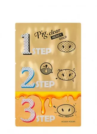 Nos bez niedoskonałości i zaskórników? Tylko trzy kroki dzielą Cię od takiego efektu. Sięgnij po maseczkę do nosa Holika Holika Pig Clear 3-step, Honey Gold i zapomnij o zaskórnikach, rozszerzonych porach, niedoskonałościach czy zmarszczkach. Maseczka wygładza skórę i usuwa odstające skórki. W pierwszym kroku ekstrakt z miodu i kwasy AHA skutecznie rozprawią się z zaskórnikami. W drugim kroku węgiel aktywny w połączeniu z miodem pozbędą się niedoskonałości, odżywią i oczyszczą skórę. Ostatni krok to saszetka ze złotem i miodowym kompleksem, które odżywiają i łagodzą podrażnienia.