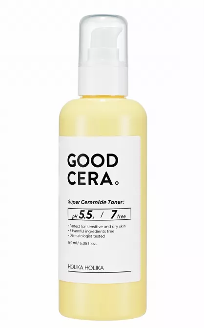 Pielęgnację skóry warto zacząć od dobrego toniku, który nawilży ją i odżywi. Jest to jeszcze ważniejsze w przypadku skóry wrażliwej. Tonik do cery wrażliwej Holika Holika Skin and Good Cera nawilża suchą oraz zmęczoną skórę. Ceramid wzmacnia ją i nadaje wyraźnej witalności, a dodatkowo utrzymuje w naskórku wodę. Ekstrakt z rukoli z kolei poprawia kondycję oraz witalność skóry, działając przy tym bardzo łagodnie. Tonik jest szczególnie bezpieczny dla skóry wrażliwej – nie podrażnia jej. Nie znajdziesz w składzie toniku: parabenu, imidazolidynylo-mocznika, diazolidynylo-mocznika, trietanoloaminy, steroidu, BHT, wazeliny, poliakryloamidu, benzofenonu.