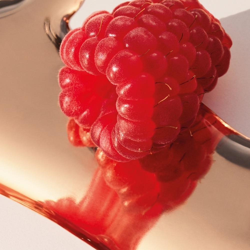 - Oryginalne połączenie nut zapachowych: maliny, wetywerii i benzoesu.