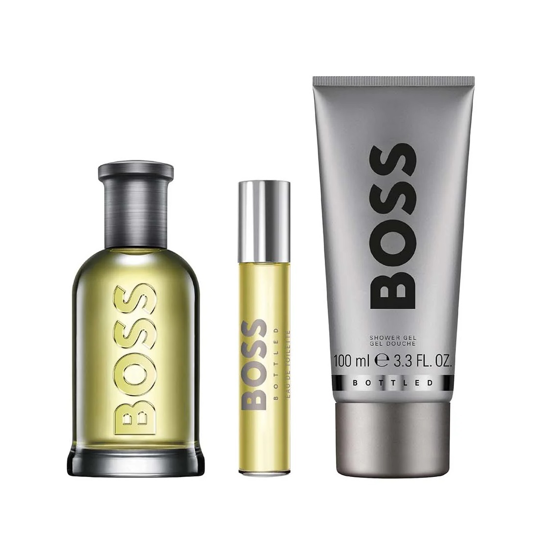 Hugo Boss Bottled zestaw woda toaletowa spray 100ml + woda toaletowa spray 10ml + żel pod prysznic 100ml (M)