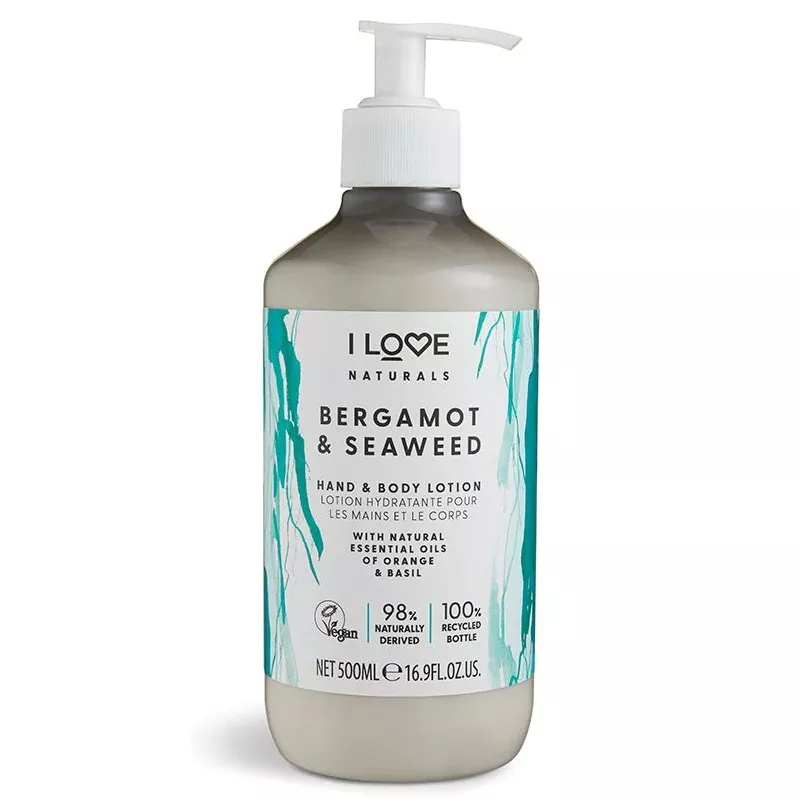 Odkryj pięknie pachnące, miękkie dłonie i ciało dzięki naturalnie nawilżającemu balsamowi do rąk i ciała I Love Naturals Hand & Body Lotion Bergamot & Seaweed. Zainspirowany naturą, został fachowo opracowany przy użyciu organicznego oleju kokosowego, masła shea i prowitaminy B5, aby pomóc nawilżyć dłonie i ciało. Ten wyjątkowo pachnący balsam został nasycony złożoną mieszanką olejków eterycznych z pomarańczy, bazylii i buchu. Formuła kochająca skórę pomaga delikatnie odżywić skórę, pozostawiając ją zdrowszą, uzupełnioną i elegancko pachnącą.