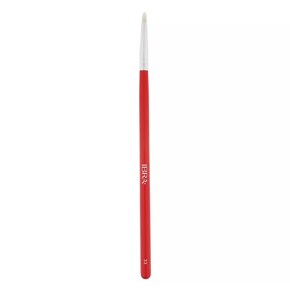 Ibra Pędzel do cieni 33 to malutki pędzelek w kształcie stożka, wykonany z naturalnego, wyjątkowo miękkiego włosa kozy. Jest idealny do precyzyjnej aplikacji cieni i pigmentów, zwłaszcza w trudno dostępnych miejscach, takich jak wewnętrzny kącik oka. Doskonale sprawdza się również podczas dopracowywania detali, rozcierania cieni przy linii rzęs oraz na dolnej powiece.