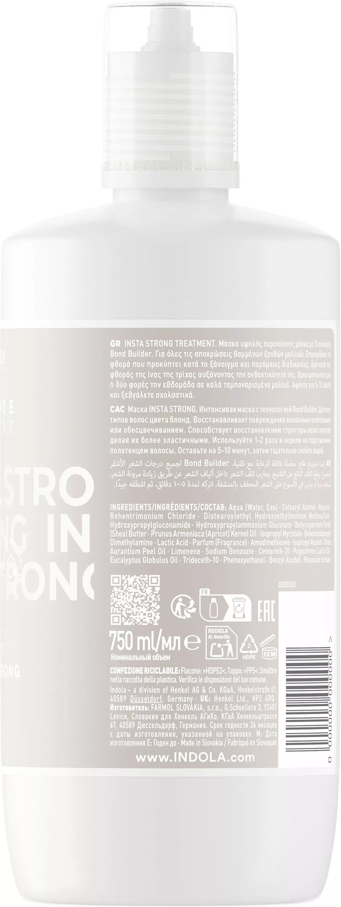 Aqua (Water, Eau), Cetearyl Alcohol, Isopropyl Myristate, Behentrimonium Chloride, Distearoylethyl Hydroxyethylmonium Methosulfate, Lanthanum Chloride, Lactic Acid, Hydrolyzed Keratin, Sclerocarya Birrea Seed Oil, Panthenol, Stearamidopropyl Dimethylamine, Cetyl Palmitate, Parfum (Fragrance), Phenoxyethanol, Isopropyl Alcohol, Mica, Sodium Methylparaben, Cetrimonium Chloride, Polyquaternium-37, Dicaprylyl Carbonate, Guar Hydroxypropyltrimonium Chloride, Dimethicone, Linalool, Hexyl Cinnamal, Limonene, Alpha-Isomethyl Ionone, Citronellol, Sodium Hydroxide, Citric Acid, Sodium Chloride, Sorbic Acid, Benzyl Alcohol, CI 77891 (Titanium Dioxide).