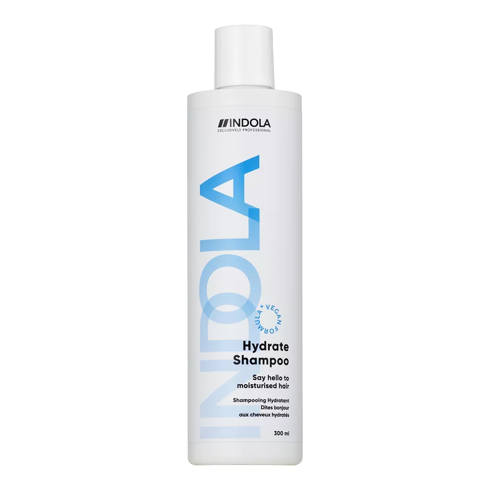 Nawilżający szampon Hydrate INDOLA, zawierający pochodną kwasu hialuronowego i pantenol, oczyszcza normalne i suche, łamliwe włosy, jednocześnie poprawiając ich poziom nawilżenia. Zmniejsza puszenie się włosów i zwiększa ich sprężystość i witalność, zapewniając zdrowo wyglądające włosy o wyjątkowym połysku. Formuła wegańska*.