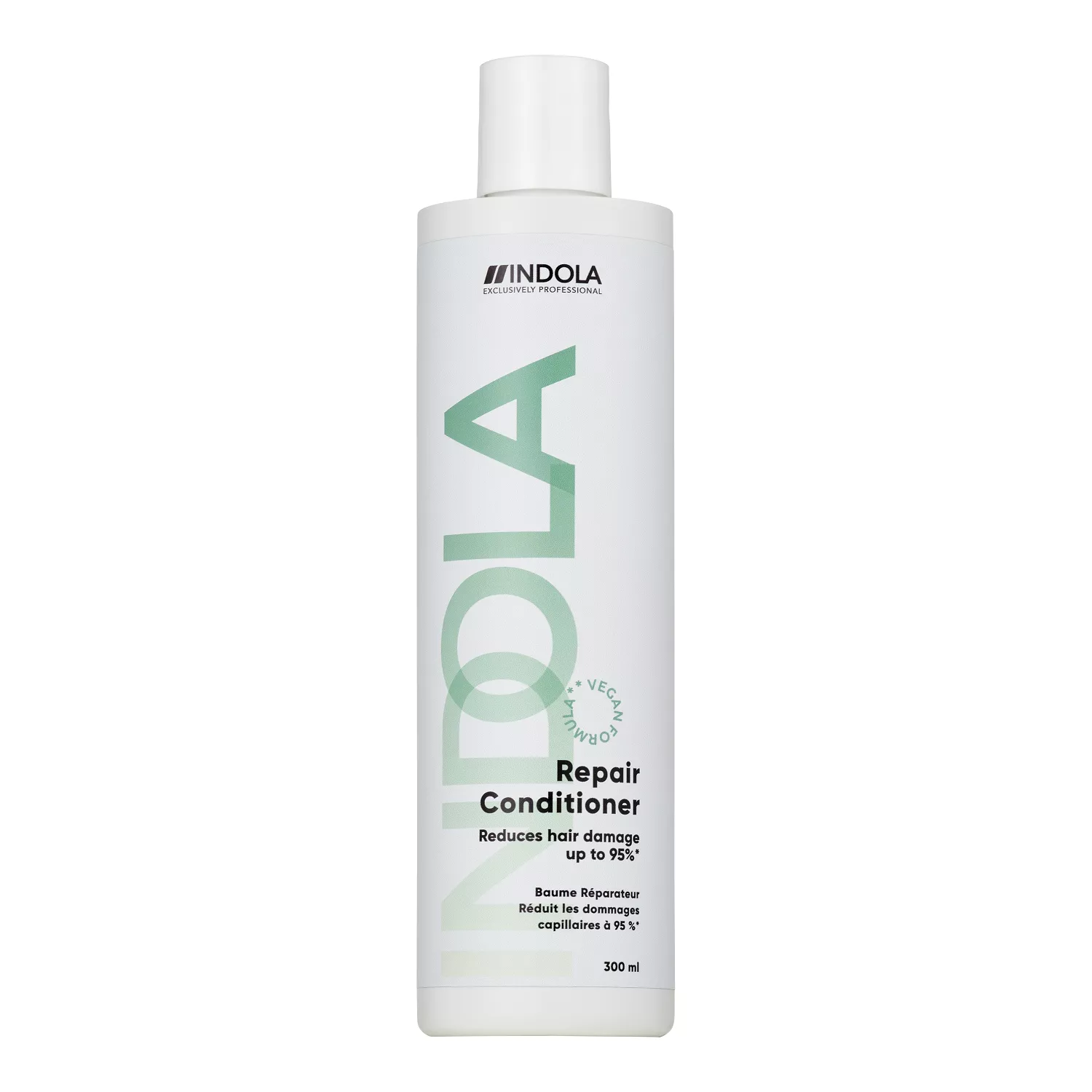 Regenerująca Odżywka Repair INDOLA, zawierająca wegańską alternatywę keratyny, wzmacnia i odżywia zniszczone, porowate włosy, nawet o 95%* chroniąc je przed uszkodzeniami. Odbudowuje i wzmacnia łuskę włosa, jednocześnie chroniąc ją przed czynnikami mechanicznymi – zapewniając lśniące, gładkie i zdrowo wyglądające włosy. Formuła wegańska**.