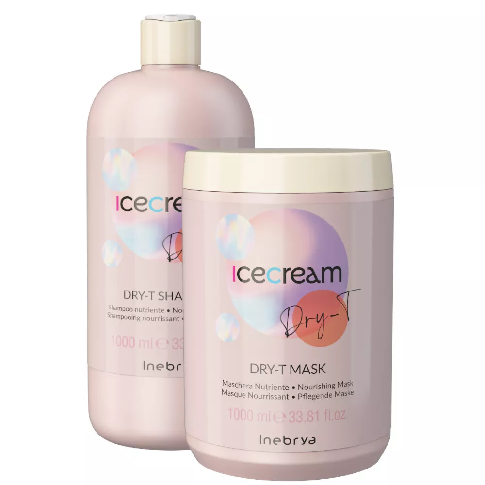 Linia Dry-T to linia idealna do włosów suchych, puszących się, trudnych do rozczesania, z rozdwajającymi się końcówkami, po lekkich zabiegach chemicznych lub częstym używaniu narzędzi do termostylizacji, co powoduje przesuszenie i utratę połysku. To właśnie o te włosy zadba zestaw kosmetyków odżywczych Inebrya Ice Cream Dry-T. Przywróć włosom dobrą kondycję i zapomnij o puszeniu.