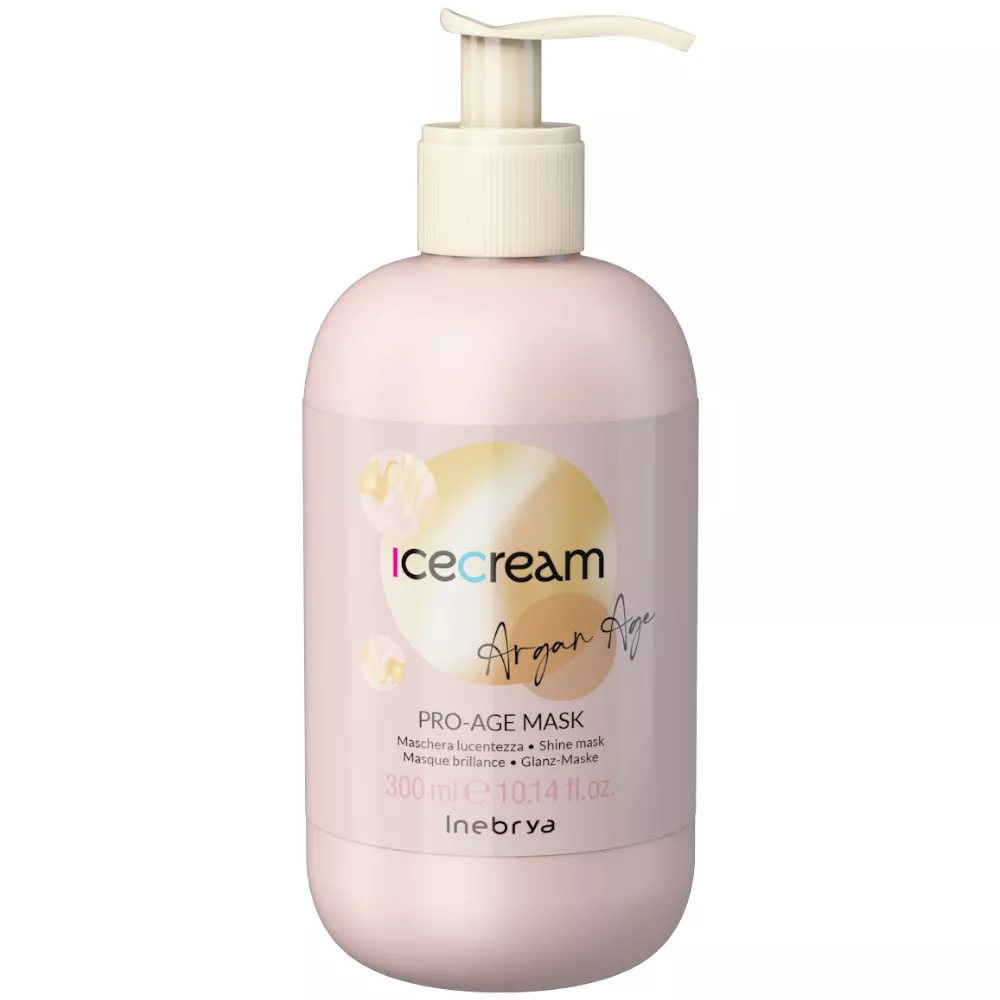 Maska nabłyszczająca Inebrya Ice Cream Pro-Age z olejkiem arganowym to profesjonalna pielęgnacja przeznaczona do włosów matowych, suchych, puszących się oraz zniszczonych. Dzięki bogatej, wegańskiej formule zawierającej aż 97% składników pochodzenia naturalnego maska skutecznie odżywia włosy, sprawiając, że stają się miękkie, jedwabiste w dotyku oraz pełne blasku. Produkt doskonale sprawdzi się także po zabiegach fryzjerskich oraz w przypadku włosów narażonych na działanie słońca, chloru, soli czy smogu.