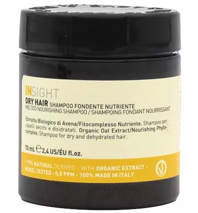 Szampon o stałej konsystencji do suchych włosów InSight Dry Hair to idealne rozwiązanie dla osób pragnących dogłębnego oczyszczenia i odżywienia włosów. Produkt skutecznie usuwa zanieczyszczenia z pasm i skóry głowy, jednocześnie pozostawiając włosy miękkie, gładkie i lśniące. Dzięki zawartości składników nawilżających, takich jak organiczny wyciąg z owsa, masło Illipe, olej kokosowy i olej ze słodkich migdałów, Twoje włosy będą wyglądały zdrowo i promiennie. Szampon w kontakcie z wodą zamienia się w łatwą do rozprowadzenia pianę, a jego kompaktowe opakowanie sprawia, że jest idealny do zabrania w podróż, na siłownię czy basen. Stała formuła zapobiega wyciekom, a produkt jest niezwykle wydajny.