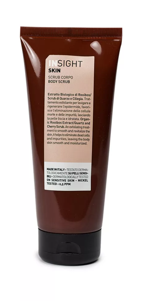 Peeling do ciała InSight Skin to idealne rozwiązanie dla osób pragnących gładkiej i zregenerowanej skóry. Produkt skutecznie usuwa martwe komórki oraz zanieczyszczenia, pozostawiając skórę miękką i przyjemną w dotyku. Dzięki właściwościom pobudzającym krążenie krwi, peeling przywraca naturalne nawilżenie i zdrowy koloryt skóry, przygotowując ją do dalszych zabiegów pielęgnacyjnych. Jego formuła opiera się na liściach rooibos, bogatych w antyoksydanty i sole mineralne, takie jak magnez, potas, mangan, żelazo i cynk, co czyni go idealnym dla skóry wrażliwej i delikatnej. Produkt posiada certyfikat ICEA, potwierdzający jego naturalność.