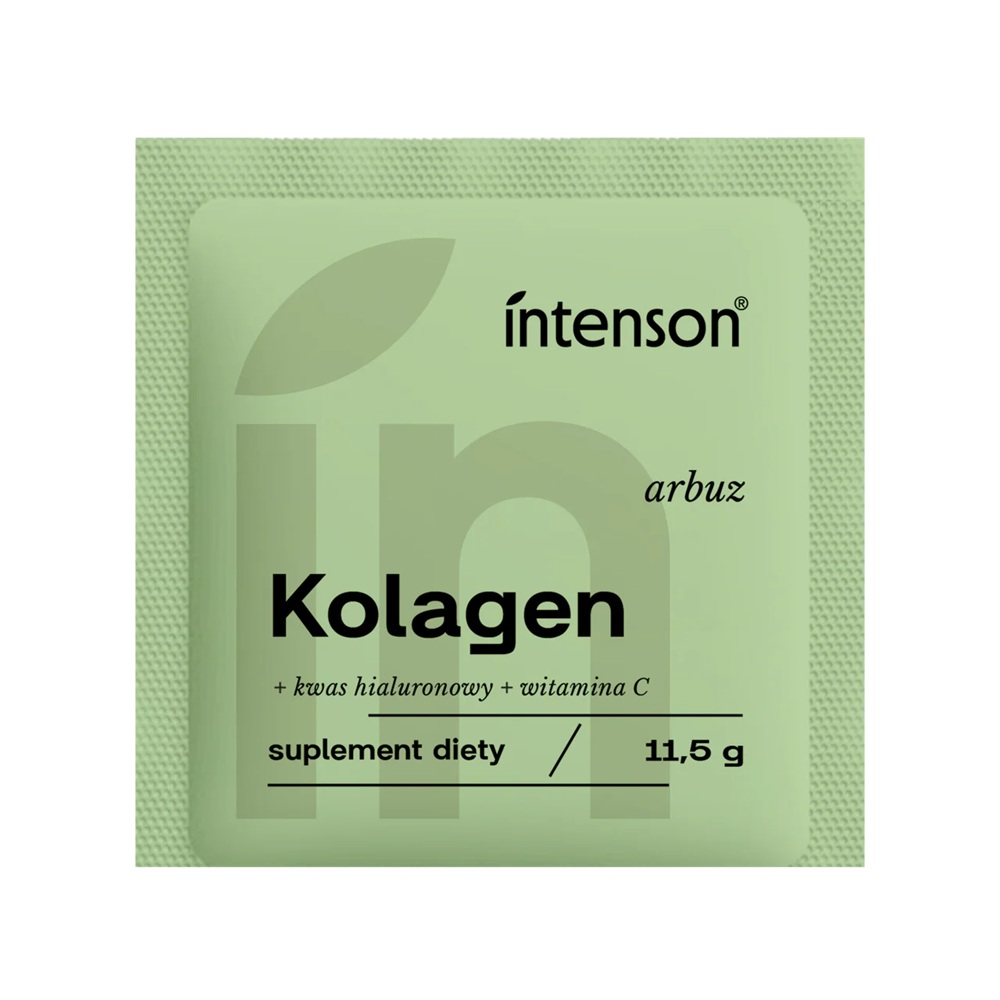 Intenson Kolagen + Witamina C + Kwas Hialuronowy o smaku arbuza to innowacyjny suplement diety w wygodnej saszetce, który dostarcza codzienną porcję hydrolizowanego kolagenu, witaminy C oraz kwasu hialuronowego. Produkt został stworzony z myślą o osobach dbających o młody wygląd skóry, mocne włosy i zdrowe paznokcie. Wyjątkowe połączenie składników aktywnych wspiera elastyczność skóry i stanowi wartościowe uzupełnienie zbilansowanej diety. Każda saszetka zawiera aż 11,5 g produktu, który łatwo rozpuszcza się w wodzie, tworząc orzeźwiający napój o naturalnym, arbuzowym smaku.