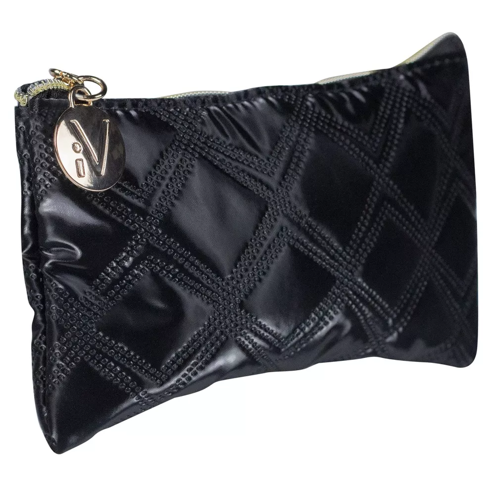 Pikowana czarna kopertówka kosmetyczka z kolekcji Inter Vion Gold&Black to idealne rozwiązanie do przechowywania drobnych akcesoriów oraz kosmetyków. Dzięki stylowemu designowi i praktycznym wymiarom, jest doskonałym towarzyszem każdej kobiety. Zamykana na zamek, zapewnia bezpieczeństwo przechowywanych przedmiotów.