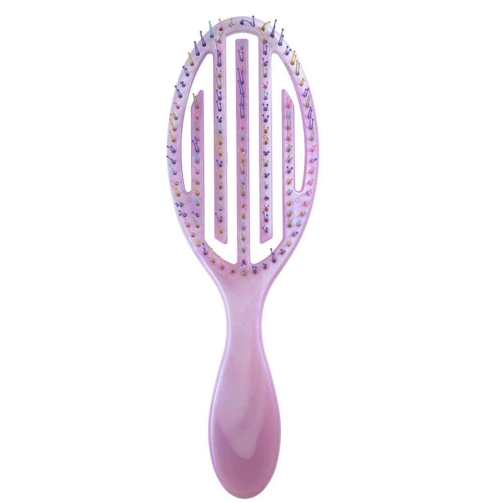 Inter Vion PearlBrush to perłowa szczotka do włosów, która została zaprojektowana, aby ułatwić codzienną pielęgnację i stylizację nawet najbardziej wymagających włosów. Dzięki innowacyjnej konstrukcji oraz zastosowaniu dwóch długości nylonowych szpilek zakończonych kulkami, szczotka efektywnie rozczesuje splątane kosmyki, jednocześnie dbając o komfort skóry głowy. Przelotowa budowa dodatkowo przyspiesza suszenie oraz ułatwia modelowanie fryzury.