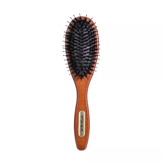 Odkryj doskonałą szczotkę do włosów - Inter Vion Szczotka drewniana z naturalnym włosiem i nylonowymi szpilkami, która zapewnia wyjątkową pielęgnację zarówno dla mokrych, jak i suchych włosów. Wykonana z antystatycznego i elastycznego włosia z sierści dzika, szczotka ta skutecznie rozczesuje włosy bez szarpania i ciągnięcia, minimalizując łamanie i wyrywanie włosów. Dodatkowo, szczotka wygładza i nabłyszcza powierzchnię włosów, a także masuje skórę głowy, poprawiając krążenie krwi.