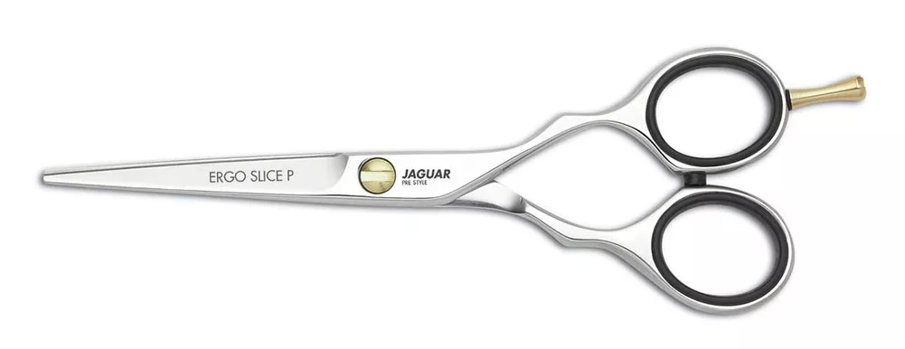 Nożyczki fryzjerskie Jaguar Pre Style Ergo P Slice są idealne do pracy, sprawdzą się również podczas nauki fachu. Posiadają symetrycznie zbudowane ramiona. Ostrze wykonano ze stali nierdzewnej. Wypukła skośnie zewnętrzna powierzchnia z perfekcyjnie szlifowanymi krawędziami tnącymi zapewnia maksymalną ostrość cięcia. Dzięki śrubie Vario można dostosować napięcie do swoich wymogów. Uchwyty są ergonomiczne, wygodne do pracy. Nożyczki mają satynowe wykończenie.