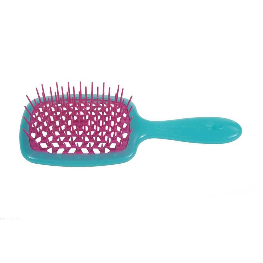 Janeke Superbrush szczotka fryzjerska do rozczesywania włosów Turkusowo-Różowa to światowy bestseller, który zrewolucjonizował rynek fryzjerski. Ta innowacyjna, pneumatyczna szczotka została zaprojektowana, aby perfekcyjnie rozczesywać każdy typ włosów bez ich ciągnięcia i wyrywania. Dzięki elastycznym ząbkom i otworom w podstawie, Superbrush idealnie nadaje się do suszenia i układania fryzur, równomiernie rozpraszając powietrze oraz delikatnie masując skórę głowy. Jest idealnym rozwiązaniem również dla dzieci, które dzięki tej szczotce pokochają czesanie włosów.