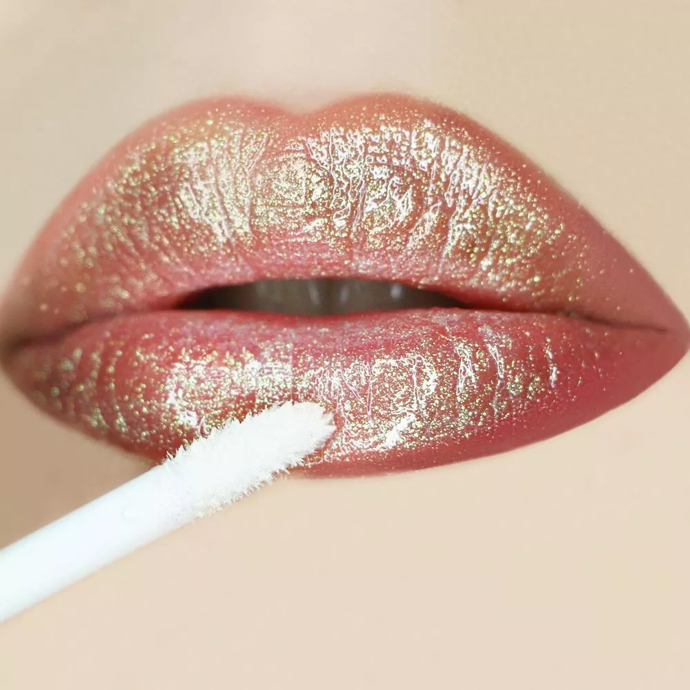 - Nałóż błyszczyk na czyste usta, aby uzyskać subtelny, holograficzny połysk.
