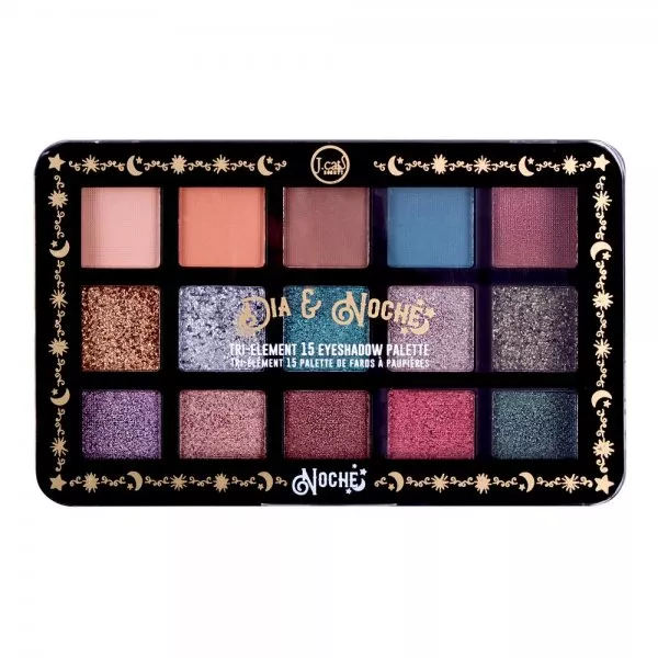 J.Cat Beauty Dia-Noche Tri-Element 15 eyeshadow palette w wariancie Noche to paleta cieni do oczu, która inspiruje do tworzenia niepowtarzalnych makijaży na każdą okazję. Zawiera 15 starannie dobranych odcieni o różnych wykończeniach, które umożliwiają wykonanie zarówno subtelnych, jak i wyrazistych stylizacji. Dzięki bogatej pigmentacji i łatwości aplikacji, każdy makijaż oka będzie przyciągał spojrzenia i utrzyma się przez cały dzień.