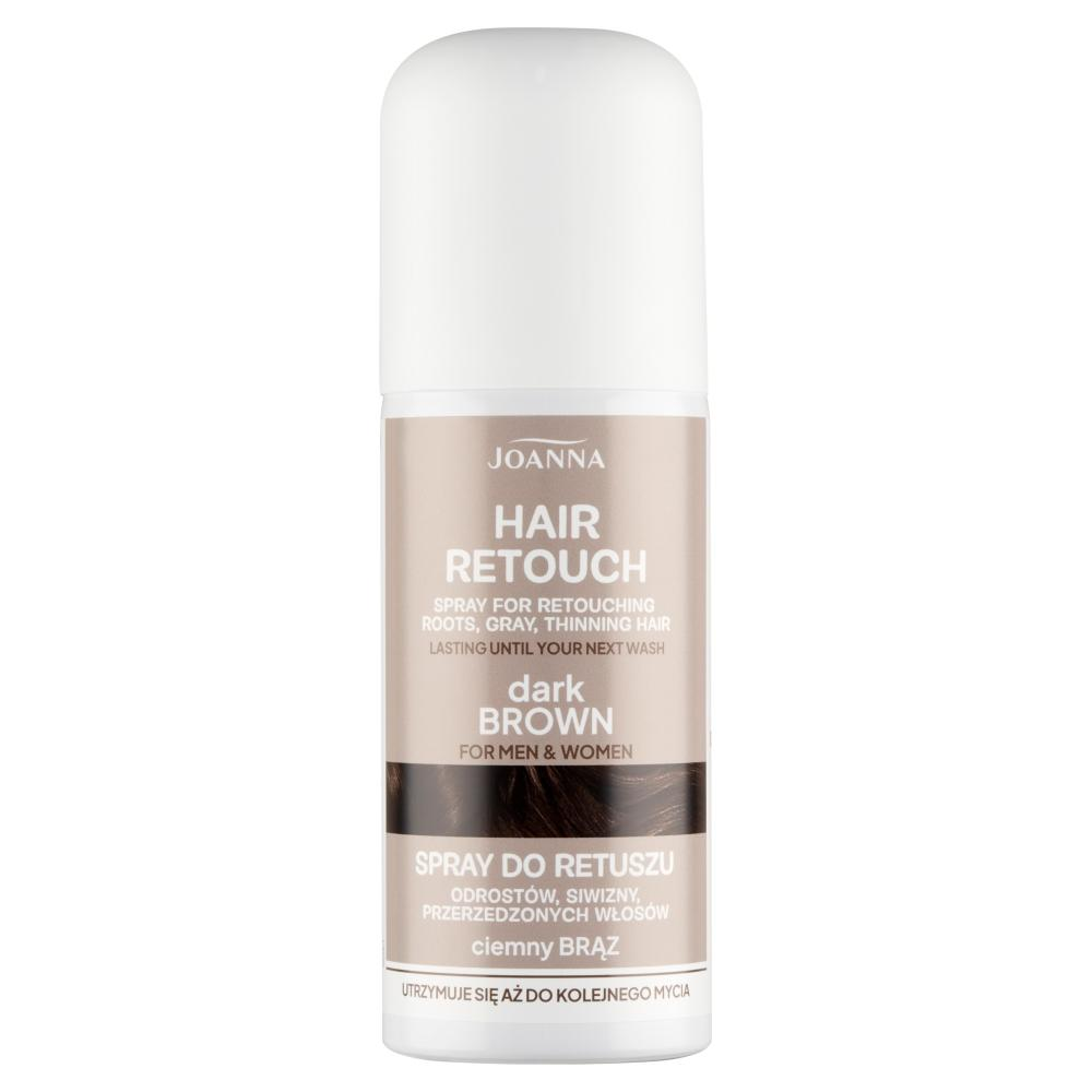 Joanna Hair retouch, spray do retuszu odrostów w odcieniu dark brown to szybki i skuteczny sposób na natychmiastowe ukrycie odrostów, siwizny oraz przerzedzonych włosów. Ten wygodny spray doskonale dopasowuje się do naturalnego koloru ciemnych i czarnych włosów, zapewniając natychmiastowy efekt, naturalny wygląd i komfort pomiędzy kolejnymi farbowaniami. Lekka formuła nie obciąża włosów, nie skleja pasm i nie pozostawia śladów na skórze, dzięki czemu możesz cieszyć się perfekcyjnym wyglądem przez cały dzień.