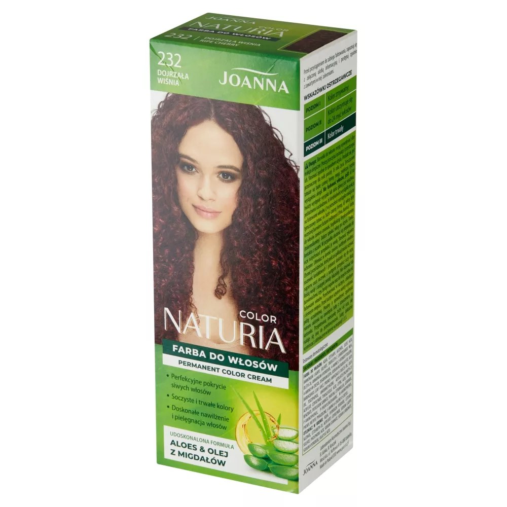 Joanna Naturia Color Farba do włosów Dojrzała Wiśnia 232 to produkt, który łączy wyjątkowy efekt koloryzacji z intensywną pielęgnacją włosów. Dzięki udoskonalonej formule farba zapewnia trwałe i modne odcienie oraz doskonałe pokrycie siwizny. Specjalna receptura głęboko odżywia i nawilża włosy podczas farbowania.