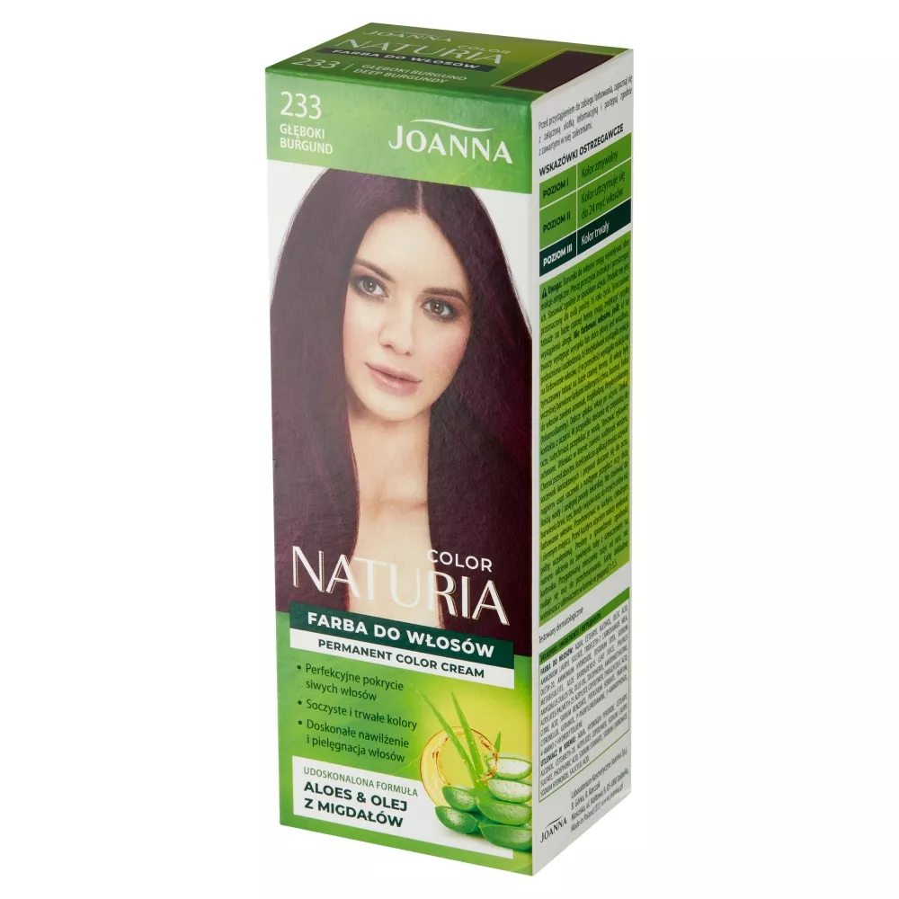 Odkryj piękno głębokiego burgundu z farbą do włosów Joanna Naturia Color 233. Ta udoskonalona formuła łączy maksymalny efekt koloryzacji z pielęgnacją, oferując trwałe i modne odcienie oraz doskonałe pokrycie siwizny. Dzięki unikalnej recepturze, farba nie tylko barwi, ale również głęboko odżywia i nawilża włosy podczas zabiegu.