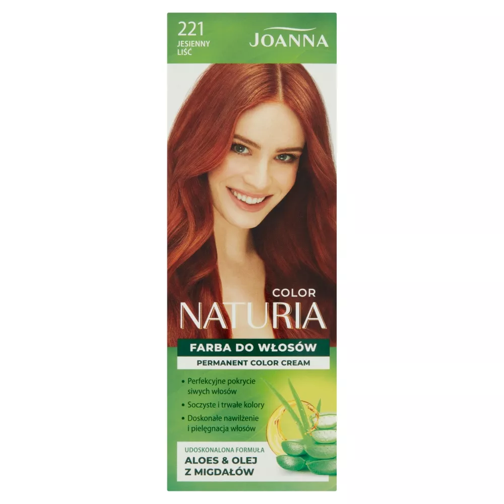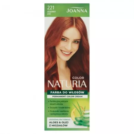 Joanna Naturia Color Farba do włosów Jesienny Liść 221 to innowacyjne rozwiązanie, które łączy w sobie maksymalny efekt koloryzacji z pielęgnacją włosów w jednym zabiegu. Dzięki udoskonalonej formule, farba oferuje trwałe i modne odcienie oraz doskonałe pokrycie siwizny, jednocześnie głęboko odżywiając i nawilżając włosy podczas farbowania.