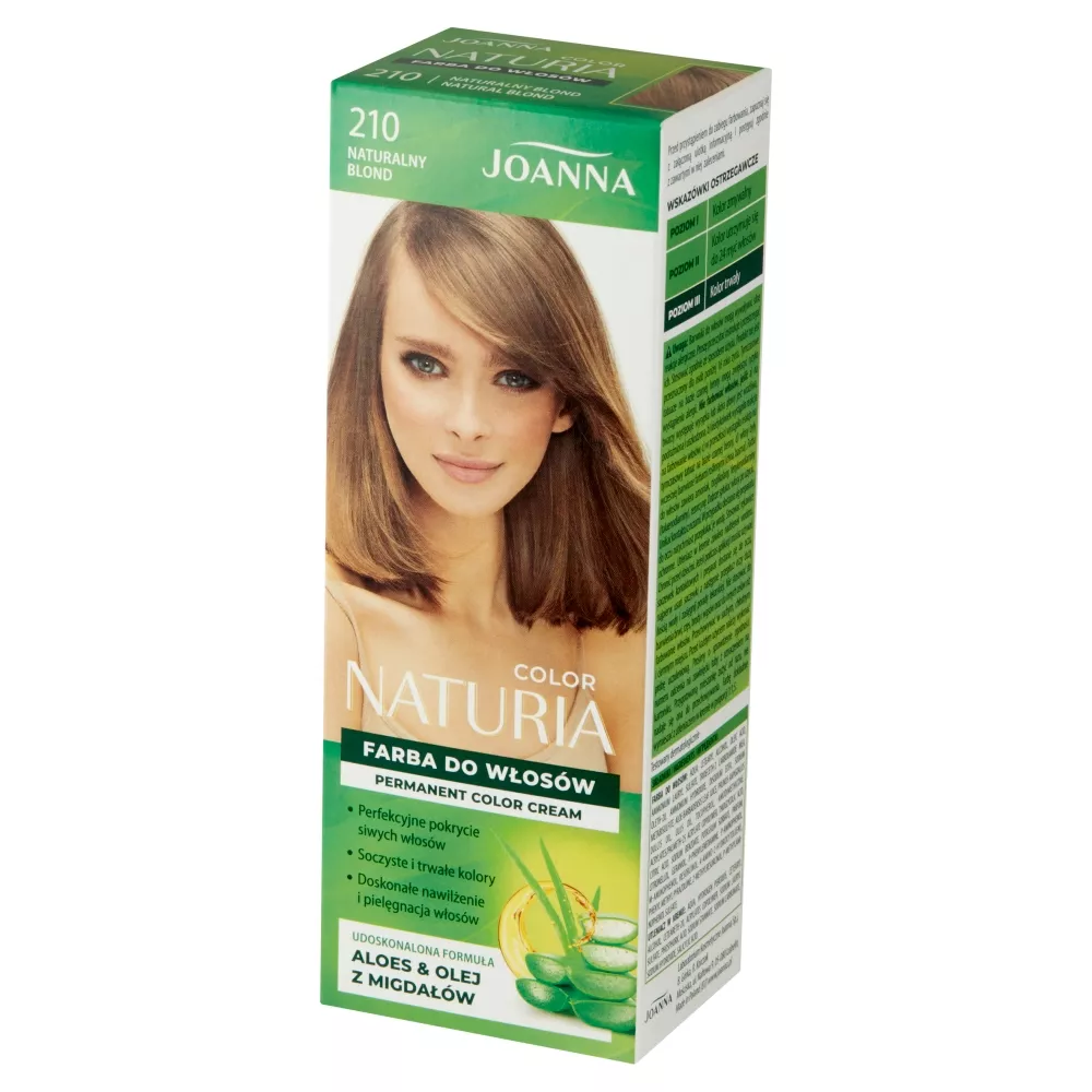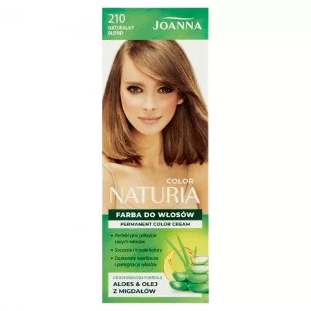 Joanna Naturia Color Farba do włosów w odcieniu naturalny blond 210 oferuje udoskonaloną formułę, która zapewnia maksymalny efekt koloryzacji i pielęgnacji w jednym zabiegu. Dzięki trwałym i modnym odcieniom, farba doskonale pokrywa siwe włosy, jednocześnie głęboko odżywiając i nawilżając włosy podczas farbowania.