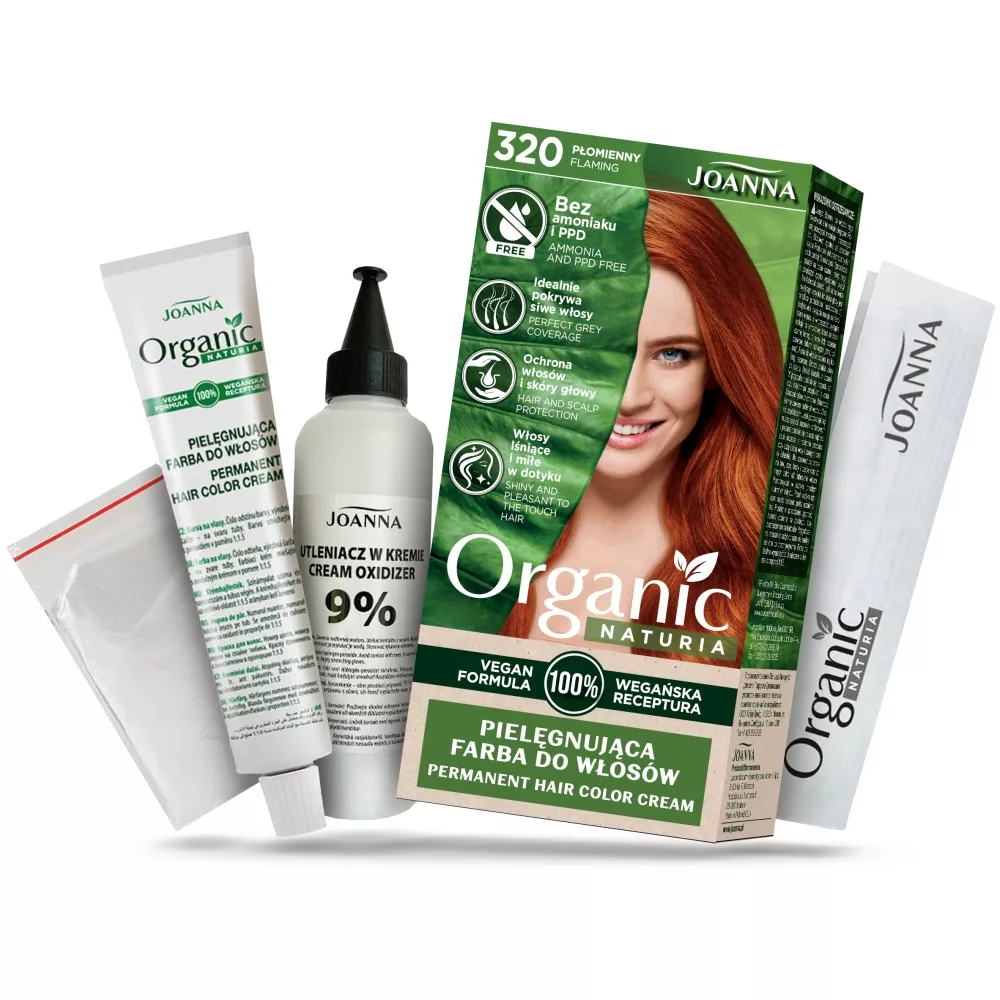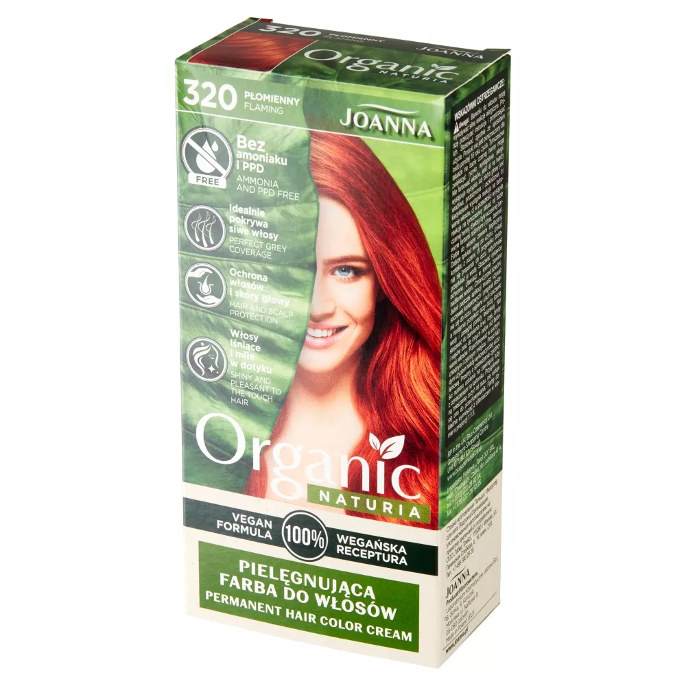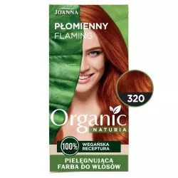 Joanna Naturia Organic Pielęgnująca Farba do Włosów Płomienny 320 to trwała farba do włosów o poziomie III, która zapewnia intensywny i trwały kolor. Stworzona w zaawansowanej technologii, zawiera recepturę w 100% wegańską, wolną od substancji drażniących, takich jak amoniak i PPD. Dzięki tej farbie możesz cieszyć się zdrowymi, lśniącymi włosami bez obaw o podrażnienia.
