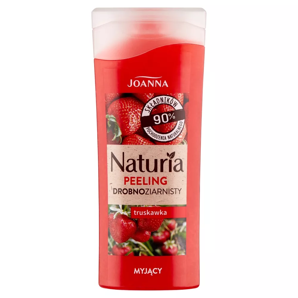 Joanna Naturia Peeling drobnoziarnisty truskawka 100 g to myjący peeling do ciała, który zawiera biodegradowalne drobinki pochodzenia naturalnego, pozyskiwane z tropikalnych orzechów rosnących w Ameryce Południowej. Produkt delikatnie złuszcza martwy naskórek, oczyszcza skórę, poprawia jej koloryt i odświeża ciało. Dzięki nawilżającemu ekstraktowi z truskawki, skóra po zastosowaniu peelingu jest oczyszczona, gładsza i świeżo pachnąca.