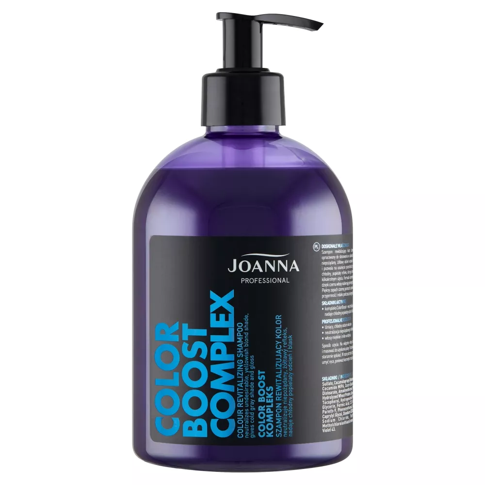Szampon rewitalizujący kolor Joanna Professional został specjalnie opracowany do stosowania w salonach fryzjerskich. Doskonale neutralizuje niepożądany, żółtawy odcień włosów blond po rozjaśnianiu lub koloryzacji i pozwala na usunięcie pozostałości produktów po tych zabiegach. Nadaje chłodny, popielaty refleks, którego intensywność zwiększa się stopniowo po kilkakrotnym użyciu. Formuła kosmetyku wzbogacona jest o mikroproteiny, dzięki czemu włosy nabierają pięknego blasku, pozostają lekkie i miłe w dotyku. Piękny zapach czarnej porzeczki sprawi, że Twoje Klientki poczują wyjątkową przyjemność i relaks podczas pielęgnacji.