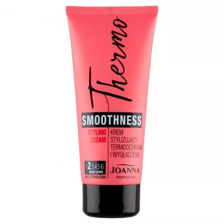 Krem stylizujący Joanna Professional został specjalnie opracowany do stosowania w salonach fryzjerskich. Znakomicie wygładza włosy i zapobiega puszeniu się, nadając im wyjątkową gładkość i piękny blask. Formuła kremu zawiera regenerujący panthenol oraz specjalny składnik zapewniający ochronę termiczną podczas stosowania suszarki, żelazka lub prostownicy. Włosy są perfekcyjnie wygładzone i miłe w dotyku.