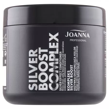 Odżywka eksponująca kolor Joanna Professional została specjalnie opracowana do stosowania w salonach fryzjerskich. Doskonale neutralizuje niepożądany, żółtawy odcień włosów blond po rozjaśnianiu lub koloryzacji i znakomicie kondycjonuje włosy dzięki składnikom odżywczym i nawilżającym. Nadaje srebrny, popielaty refleks, którego intensywność zwiększa się stopniowo po kilkakrotnym użyciu.