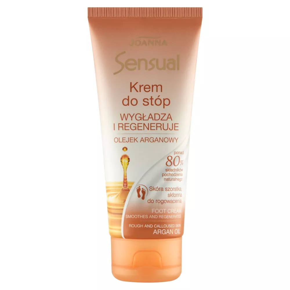 Joanna Sensual Krem do stóp z olejkiem arganowym to wyjątkowy produkt, który gwarantuje skuteczną pielęgnację, pozostawiając skórę stóp gładką, miękką i zdrową. Dzięki zawartości olejku arganowego, bogatego w witaminę E oraz nienasycone kwasy tłuszczowe, krem intensywnie odżywia i regeneruje skórę. Formuła wzbogacona o mocznik i kwas mlekowy wzmacnia działanie zmiękczające i wygładzające, pomagając jednocześnie w usuwaniu zrogowaciałego naskórka. Lekka konsystencja produktu sprawia, że krem doskonale się aplikuje i szybko wchłania.