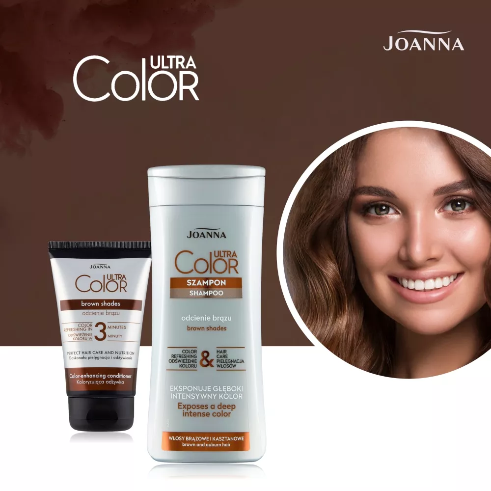 Joanna Ultra Color Koloryzująca odżywka odcienie brązu 100 g to doskonałe rozwiązanie dla osób pragnących zmienić lub odświeżyć kolor swoich włosów. Dzięki innowacyjnej formule, odżywka pozwala uzyskać intensywny i świetlisty odcień już w 3 minuty, nie zawierając amoniaku ani wody utlenionej. Efekt koloryzacji utrzymuje się do 3-4 myć, stopniowo się wypłukując, co daje możliwość częstego eksperymentowania z wyglądem.