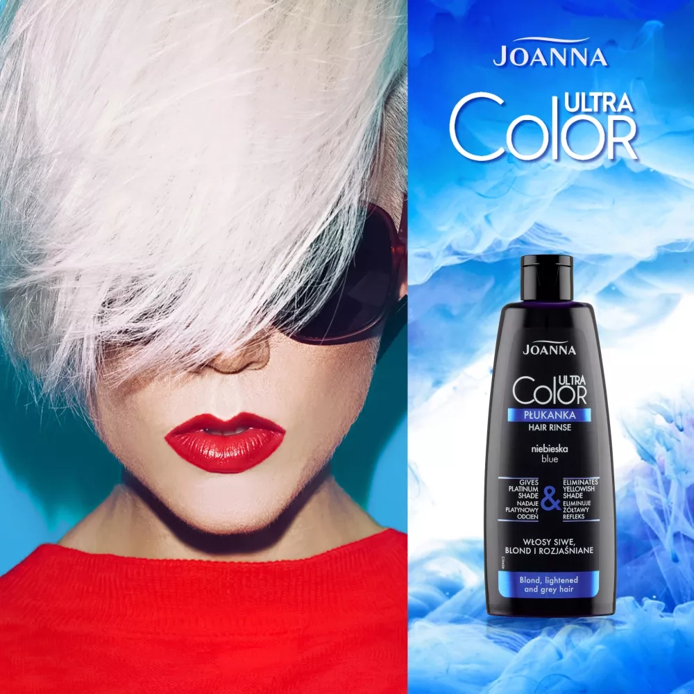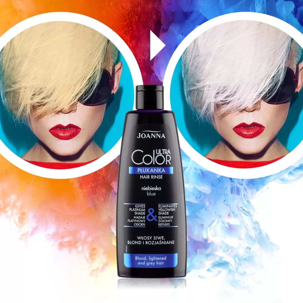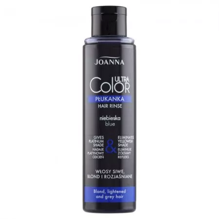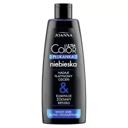 Joanna Ultra Color Płukanka niebieska 150 ml to doskonały wybór dla osób pragnących nadać swoim włosom wyrazisty, platynowy refleks. Idealnie sprawdza się na włosach siwych, blond oraz rozjaśnianych, skutecznie niwelując żółte odcienie. Dzięki tej płukance Twoje włosy zyskają platynowy odcień, połysk i zachwycający wygląd.