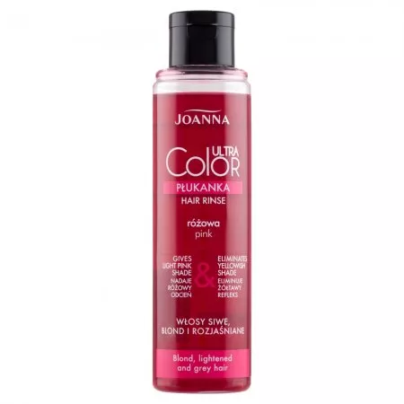 Płukanka Joanna Ultra Color w kolorze różowym to doskonały sposób na uzyskanie delikatnego, różowego refleksu na włosach siwych, blond oraz rozjaśnianych. Produkt skutecznie niweluje żółty odcień włosów, nadając im różowy połysk i piękny wygląd.