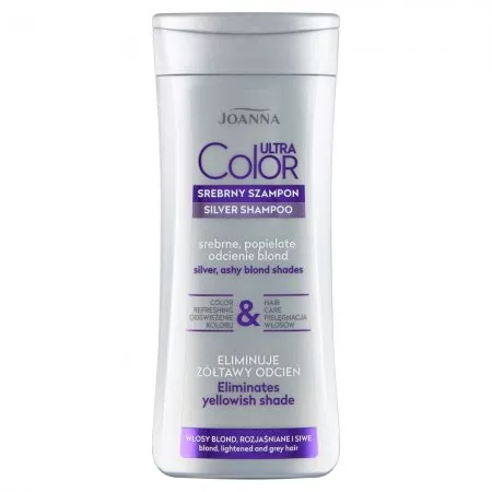 Joanna Ultra Color Srebrny szampon to idealne rozwiązanie dla osób pragnących nadać swoim blond włosom srebrne i popielate odcienie. Dzięki specjalnie wyselekcjonowanym barwnikom, już po kilkakrotnym użyciu, włosy zyskują niepowtarzalny blask. Produkt ten jest również doskonały dla włosów siwych, przywracając im naturalne piękno i ożywiając połysk. Regularne stosowanie szamponu pogłębia intensywność odcienia, zapewniając długotrwałe rezultaty.