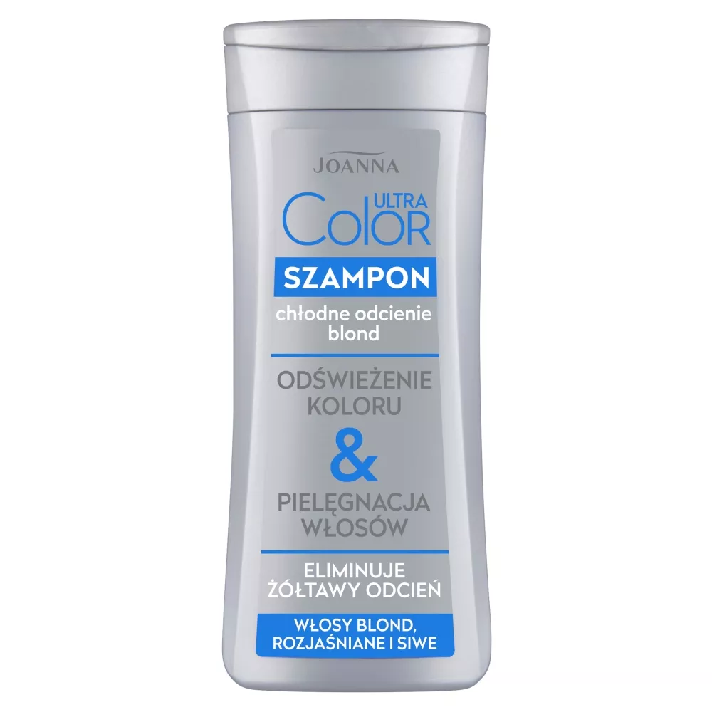 Joanna Ultra Color Szampon do włosów blond, rozjaśnianych i siwych to specjalistyczna formuła opracowana z myślą o ochronie i wzmocnieniu włosów. Dzięki wyselekcjonowanym barwnikom, szampon po kilku zastosowaniach nadaje włosom blask oraz chłodny, platynowy odcień. Produkt jest idealny również dla włosów siwych, przywracając im naturalne piękno i ożywiając połysk. Regularne używanie szamponu wzmacnia intensywność odcienia.