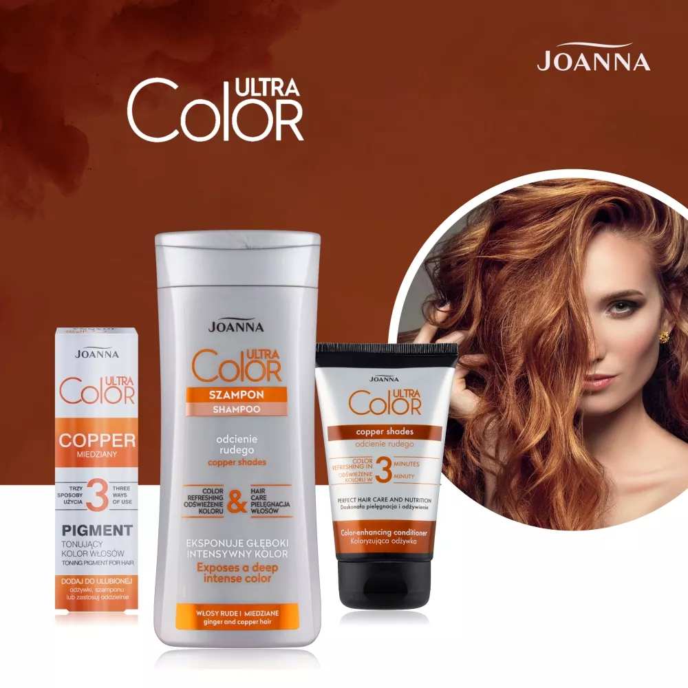 Joanna Ultra Color Szampon do włosów rudych i miedzianych o pojemności 200 ml to idealne rozwiązanie dla osób pragnących zachować żywy i głęboki kolor swoich włosów. Szampon zawiera składniki działające ochronnie i nawilżająco, które sprawiają, że włosy są delikatne w dotyku, a kolor pozostaje olśniewający na dłużej. Wyselekcjonowane barwniki w formule produktu ożywiają i przedłużają trwałość koloru.